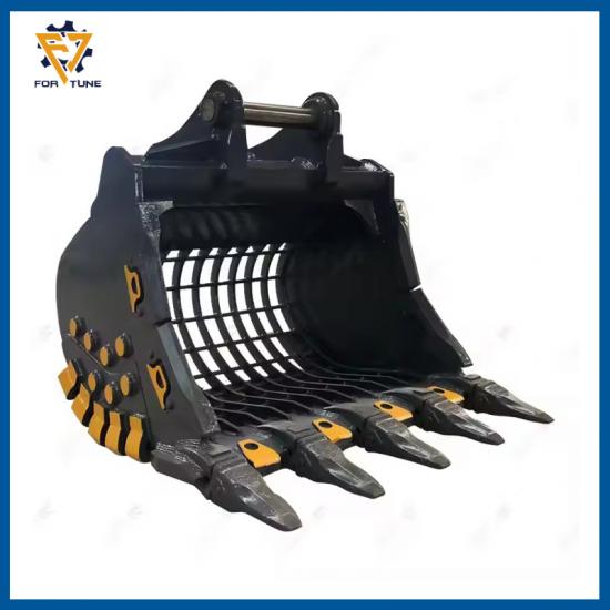 Benna da roccia per escavatore: Benna da roccia per escavatore resistente all'usura per terreni duri come la roccia. Sulla base della benna standard, la parte inferiore della benna è saldata con un blocco di protezione, che rende il corpo della benna più solido. La scelta di acciaio ad alta resistenza prolunga la durata del prodotto di diverse volte; le prestazioni di scavo sono migliori e l'economia è più eccezionale. È adatta per lo scavo di pietre dure, pietre sub-solide e pietre esposte agli agenti atmosferici mescolate al terreno; carico di pietre solide e minerali frantumati e altre operazioni pesanti.
